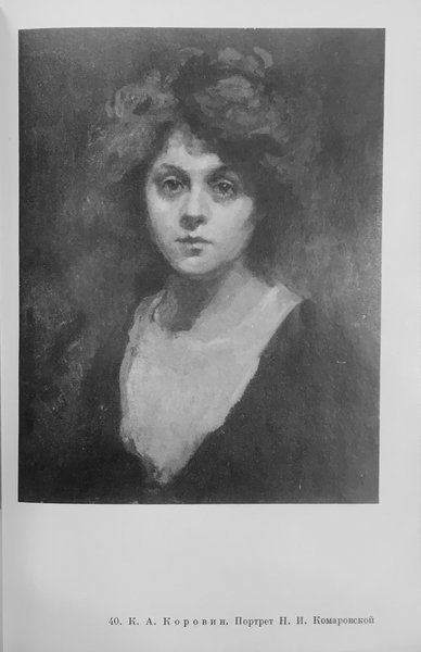 В дальнейшем разговор зашел о театре и постепенно перешел на драматургию. Большое впечатление на Комаровскую произвела многосторонность знаний больших художников, меткость и точность их критических замечаний. Когда они прощались, Константин Алексеевич попросил позволения заехать к Надежде Ивановне, чтобы сделать несколько предварительных набросков для будущего портрета.